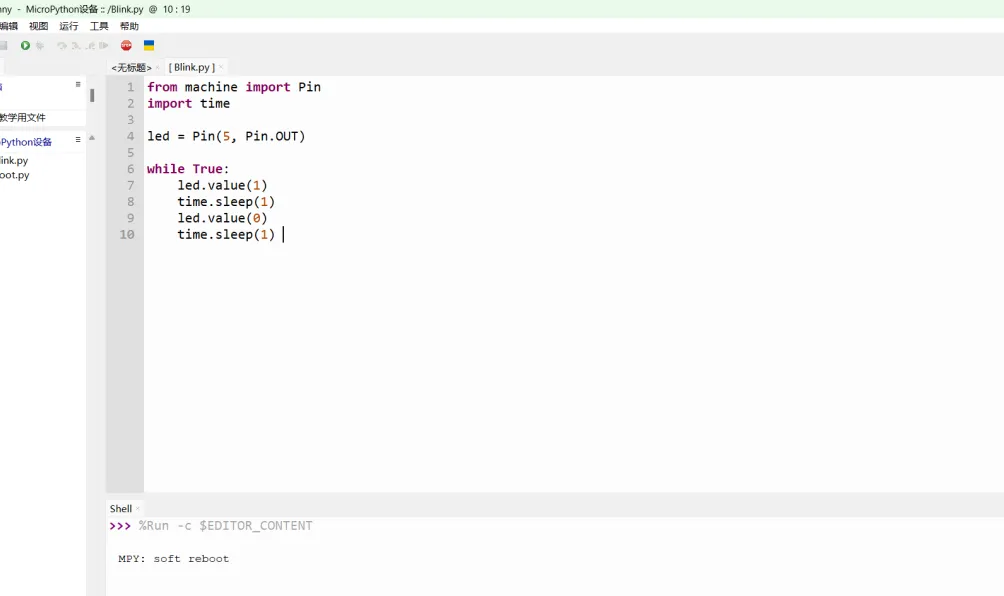 结合LED亮灭:“当5号引脚输出高电平‘1’时,LED灯点亮;输出低电平‘0’时,LED灯熄灭。”用简单通俗的语言帮助学生理解电压与LED状态的关系。