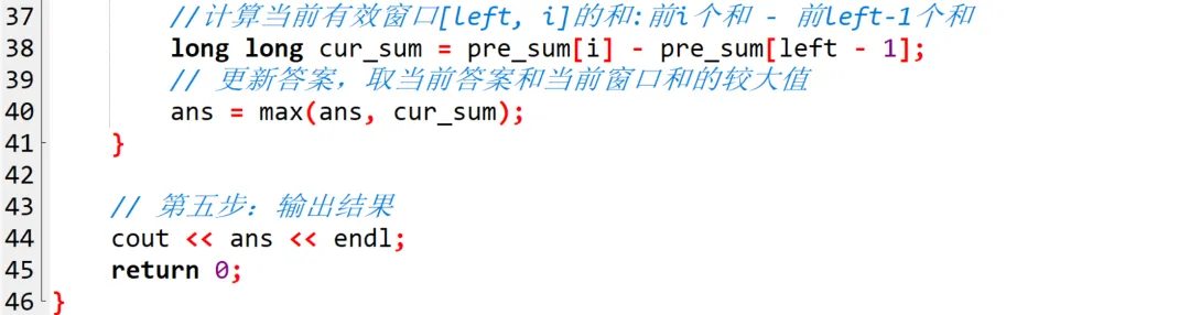 前缀和计算:pre_sum[i] = pre_sum[i-1] + a[i]。
