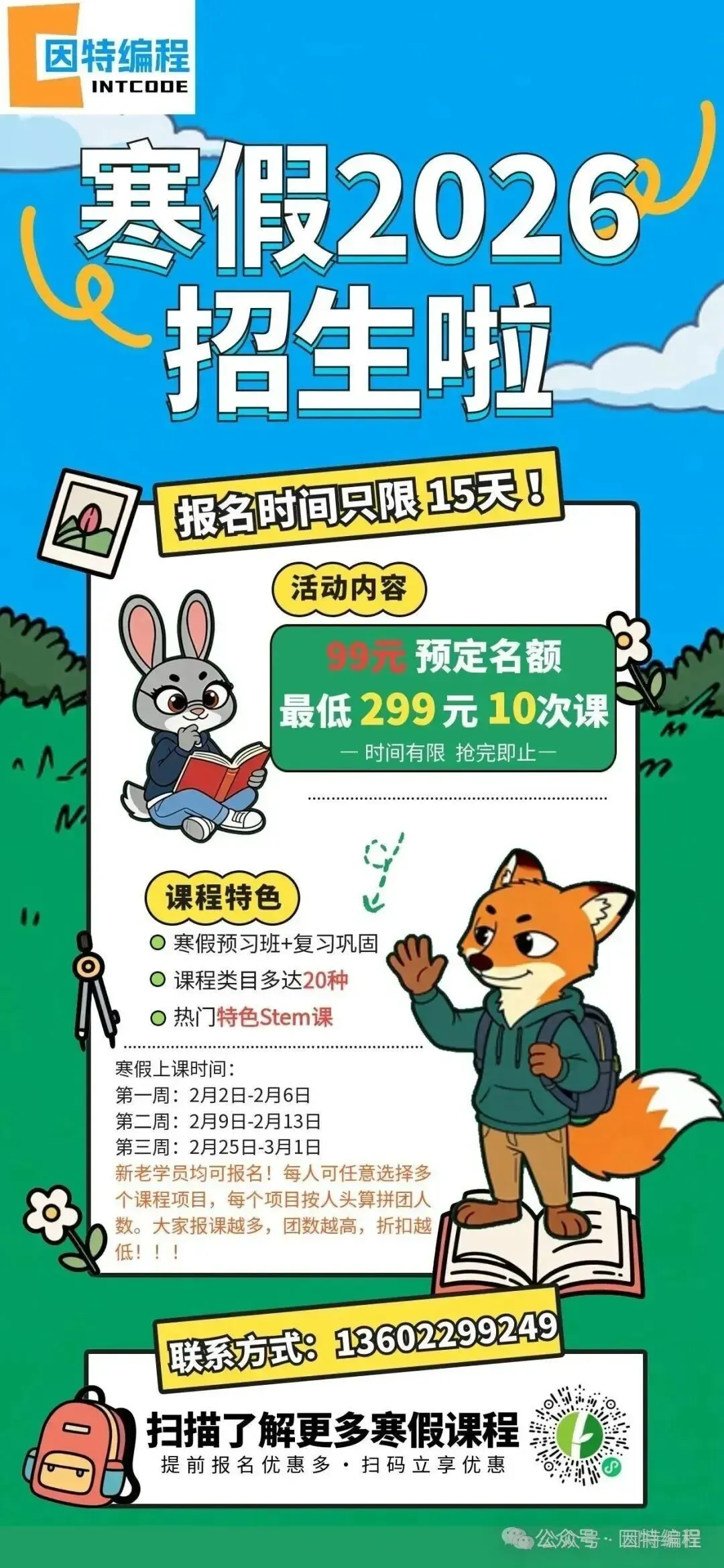 机器人/代码寒假招生!让更多的孩子得到更好的逻辑思维、信息技术教育!