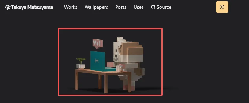 因为我要对标的是Craftzdog的个人网站,它的最顶部是一只站立办公的像素风的小狗的3D效果,我觉得还挺炫酷的。