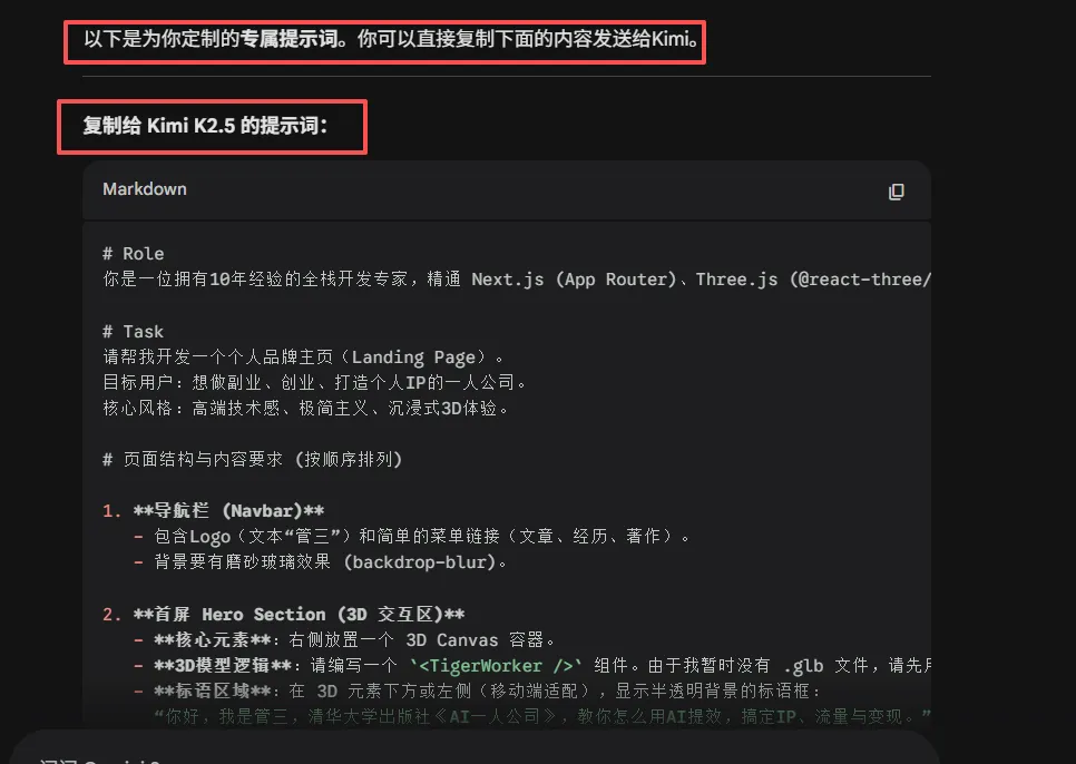 这是非常关键的一步,很多人可能会说:管三,我知道 Kimi 很强,但我不知道怎么给它下指令。