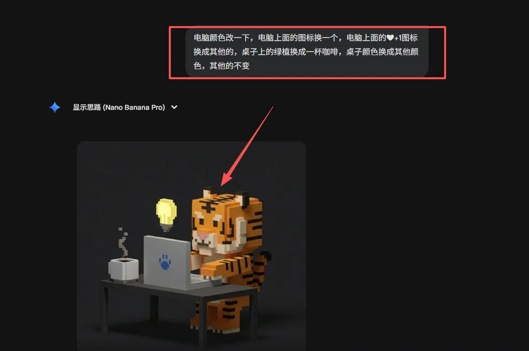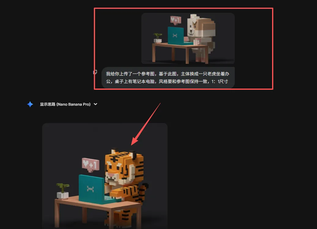 我这里是用Gemini画了一只像素风格的老虎办公的照片,因为后面要能用得上。