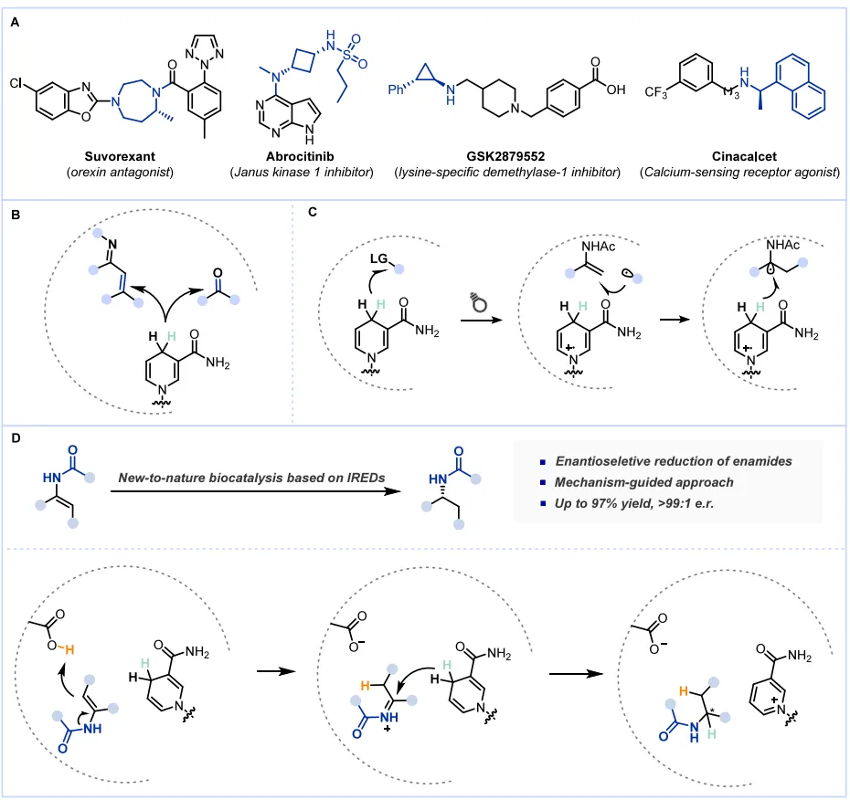 机制创新:揭示了一种全新的“酶促烯胺-亚胺互变异构”活化机制,为开发其他惰性官能团生物催化还原提供了新思路。