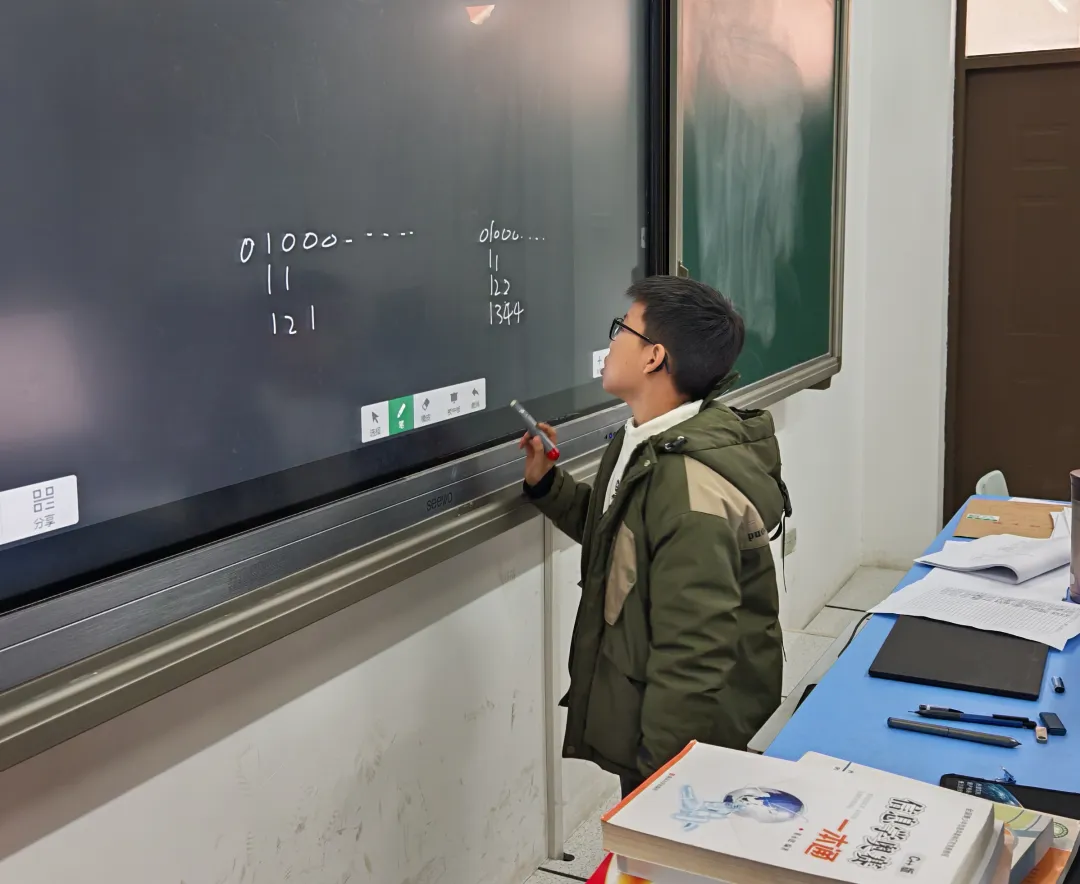 (王信锦上台讲解算法思路,并分别举了从右向左和从左向右的正反例子)