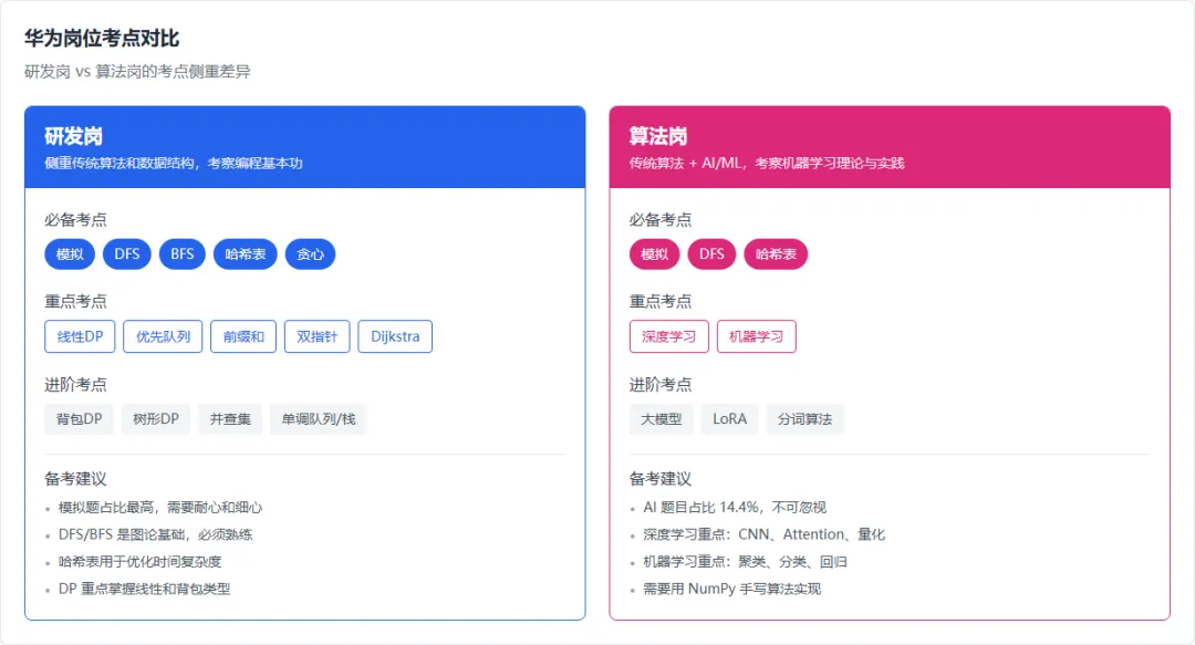 前两篇文章,我分别讲了华为笔试的整体考点分布和研发岗的备考攻略。今天这篇,专门给算法岗的同学。