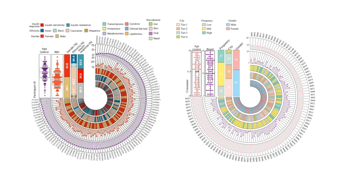 最近在Nature子刊看到一幅散点图加回归拟合图,挺好看的,分享给大家。图的横轴和纵轴分别表示两个连续变量(原文里是基因组大小和基因数量),用不同符号或颜色区分不同数据来源或类别,并叠加一条拟合趋势线来展示变量之间的整体关系。这类图在科研和数据分析中非常常见,主要用途是:(1)观察两个变量之间是否存在相关性;(2)比较不同数据集或分组在该关系中的分布差异;(3)识别异常值或偏离趋势的样本;(4)辅助判断数据的一致性、质量和潜在偏差。所以,它本质上是一种用于探索变量间关系并比较多组数据模式的组合图。
