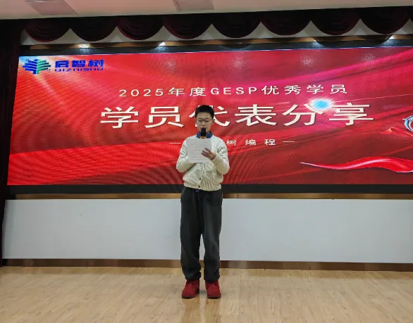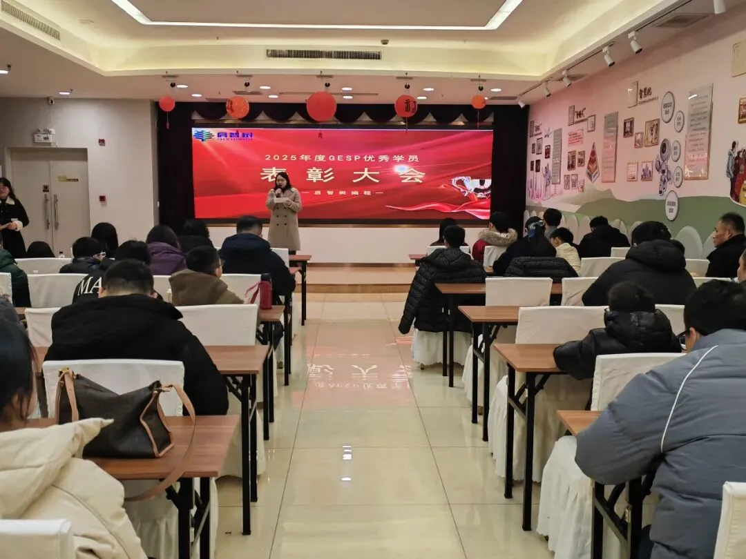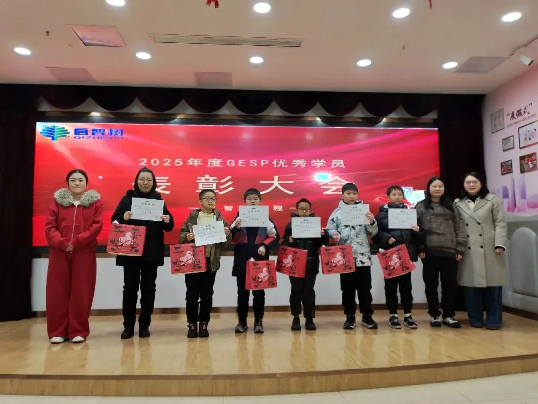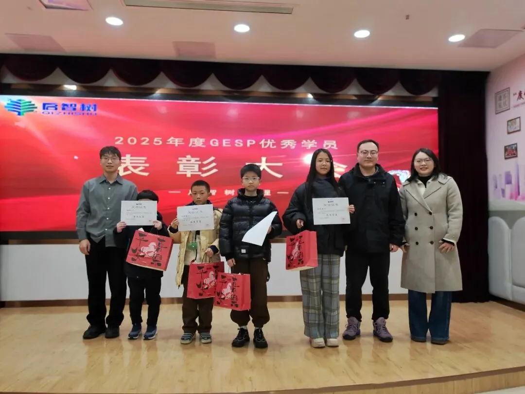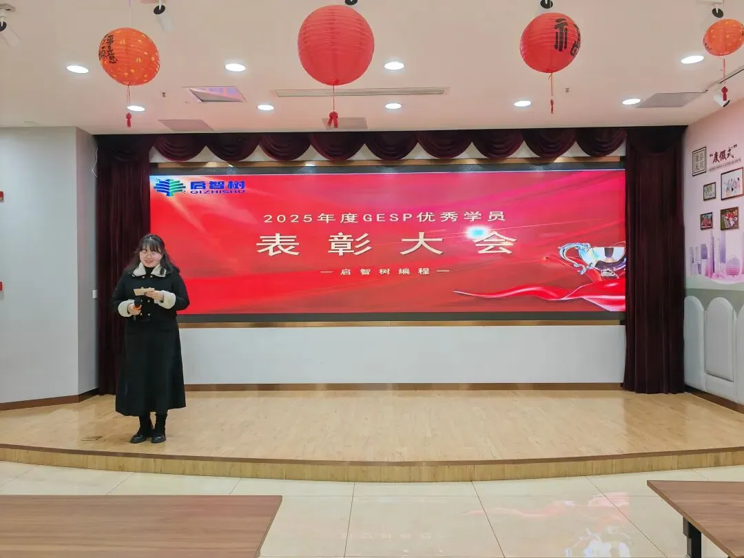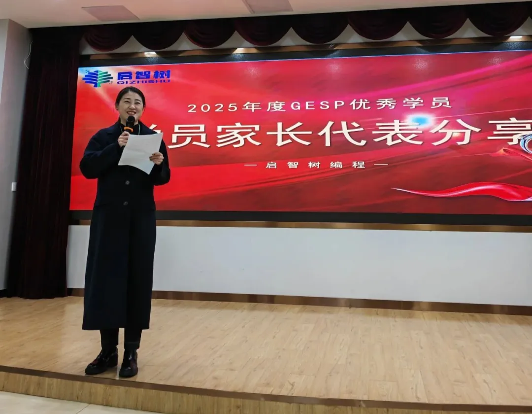 1月31日晚,启智树编程“2025年度GESP优秀学员表彰大会”圆满落幕!我们齐聚一堂,一起为GESP考试中脱颖而出的学霸们喝彩,共同见证属于他们的荣耀时刻,定格编程路上的成长与荣光。伴随着轻快的庆祝音乐,表彰大会正式拉开帷幕。主持人温情开场,向莅临现场的曹总、授课老师、家长朋友们表示热烈欢迎,同时细数12月份GESP考试的亮眼成果——本次共有25位学员斩获90+高分,每一份成绩的背后,都是少年们日夜深耕的坚持,更是师生同心、家校同行的见证。现场氛围热烈,孩子们眼中闪烁着期待与自豪,家长们脸上满是欣慰与期许,共同等待着高光时刻的到来。表彰大会上,启智树编程的创始人曹孟尧老师上台致辞,向所有优秀学员致以最诚挚的祝贺。讲话中,小曹老师肯定了学员们在编程学习中展现的耐心与毅力,提及编程学习离不开逻辑思维的锤炼与日复一日的练习,90+的成绩是对大家努力的最好回馈。同时,小曹老师也分享了机构深耕编程教育的初心,感谢老师们的悉心授课与家长们的全力配合,并寄语所有学员,以今日之荣耀为起点,保持热爱、脚踏实地,在编程的世界里探索无限可能,在未来的进阶之路上再创佳绩。最激动人心的颁奖环节如期而至!主持人分批次宣读获奖学员名单,每念到一个名字,都伴随着热烈的掌声,获奖学员们昂首挺胸、有序上台,接过属于自己的奖状与奖品。小曹老师和授课老师亲手为孩子们颁发荣誉,与他们握手、合影,一句句“继续加油”的鼓励,传递着温暖与力量。一张张奖状,是荣誉的勋章;一份份奖品,是成长的激励,孩子们双手接过荣耀,脸上洋溢着自信与骄傲,这份光芒,源于每一次代码的调试,每一次难题的攻克。榜样的力量,可学可仿;优秀的经验,可鉴可践。本次大会特别邀请了获奖学员代表赵一卜上台分享。他真诚讲述了自己的编程学习心得与GESP备考技巧,从日常练习的方法到难题突破的思路,从对编程的兴趣培养到坚持的意义,干货满满、诚意十足。他表示,编程学习没有捷径,唯有勤加练习、主动思考,才能不断提升,同时也感谢机构老师的悉心指导与家长的默默支持。台下的学员们认真聆听,纷纷表示要以他为榜样,在编程学习中更加努力、奋勇争先。一份成绩的背后,离不开孩子的拼搏,更离不开家长的陪伴与支持。本次表彰大会特别邀请家长代表赵一卜的妈妈上台发言,分享育儿心得与陪伴孩子学习编程的感悟。她对机构的悉心培育、老师们的专业指导表达了诚挚的感谢,坦言见证孩子在编程学习中收获逻辑思维的提升、克服困难的勇气,远比成绩本身更珍贵。同时,家长代表也寄语所有孩子,珍惜这份荣誉,保持对编程的热爱,在探索中成长,在坚持中进步,不负时光、不负自己。朴实的话语里,满是对孩子的期许,也道出了所有家长的心声,引发了现场家长们的共鸣。为助力孩子们在编程道路上稳步进阶、科学规划学业,本次大会特别邀请到拥有丰富教学经验、深耕编程学业规划的专家莅临现场,为学员和家长们带来专业分享。专家结合多年编程教学实践与GESP考试规律,拆解了高分背后的学习逻辑,针对不同阶段学员的编程学习重点、学业规划方向给出了实用建议,既解答了家长们关于孩子编程进阶、升学适配的疑问,也为学员们后续的学习指明了路径。同时,专家还强调,编程学习不仅是技能的提升,更是逻辑思维与综合素养的锤炼,建议孩子们保持兴趣、循序渐进,在坚持中实现突破。表彰大会的尾声,师生们共同上台拍摄集体合照。大家面带微笑,并肩而立,每一个笑容都充满力量,每一份期许都承载着热爱。快门按下,定格的不仅是一场表彰的圆满,更是少年们编程之路的崭新起点;留存的不仅是一张合影,更是一份坚持与热爱的见证。一场表彰,是对过往努力的肯定;一份期许,是对未来成长的期许。本次GESP优秀学员表彰大会的圆满落幕,不仅为优秀学员送上了荣誉与鼓励,更在优秀学员心中种下了“向更优秀看齐”的种子。编程之路,道阻且长,行则将至;少年之途,心有光芒,何惧路长。启智树编程将继续深耕编程教育,用心陪伴每一位学员成长,助力孩子们在编程的世界里锤炼思维、收获成长,在每一次挑战中突破自我、绽放光芒。再次祝贺所有优秀学员,愿你们带着这份荣耀,不负热爱、不负韶华,在编程的星辰大海中,逐光而行、续写华章!也期待更多编程少年加入我们,一起解锁代码魅力,奔赴美好未来~