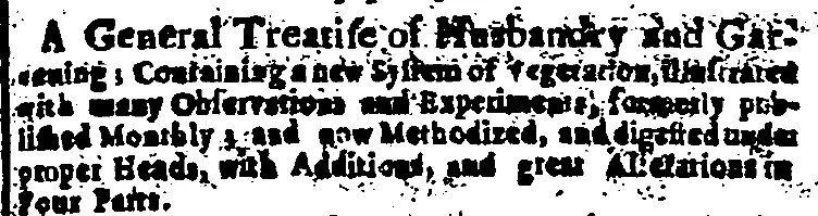 A General Treatise of Husbandry and Gardening; Containing a new System of Vegetation, illustrated with many Observations and Experiments; formerly published Monthly; and now Methodized, and digested under proper Heads, with Additions, and great Alterations in Four Parts.