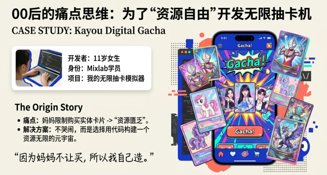 视角回到国内,在 Mixlab AI编程训练营,我们看到了同样的火花。这些11岁的孩子,正在用“产品经理”的思维,解决生活中的真实痛点。