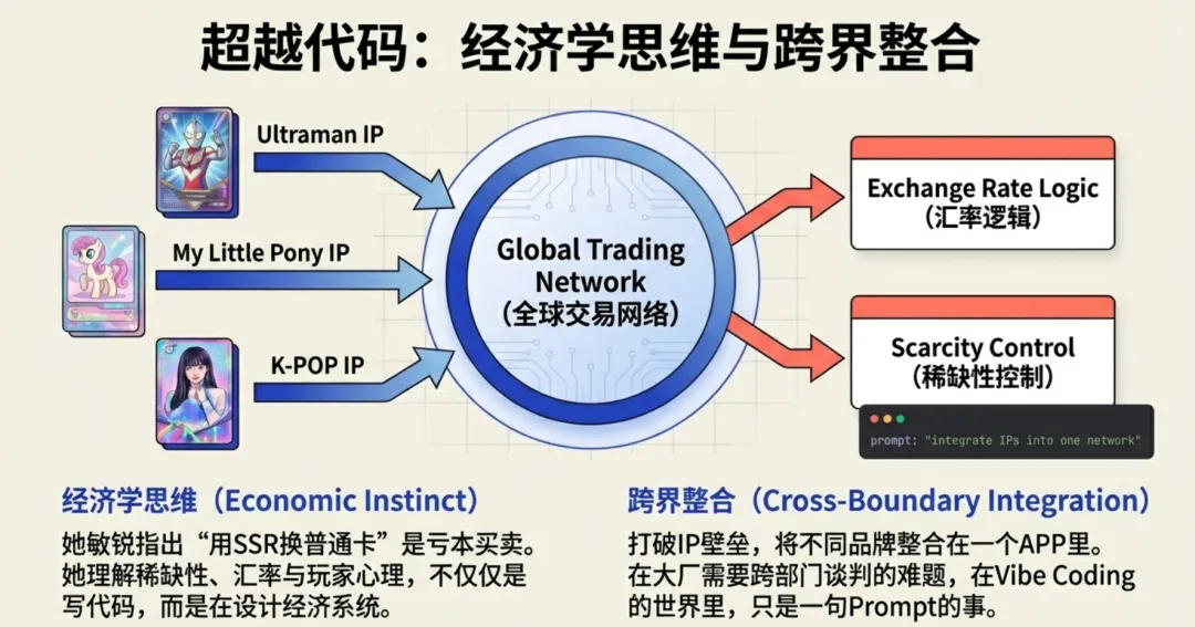 这个项目的起点非常有趣 —— “资源匮乏”。因为妈妈限制购买实体卡片,这位小女孩没有选择哭闹,而是选择“降维打击”:用代码构建一个资源无限的元宇宙。