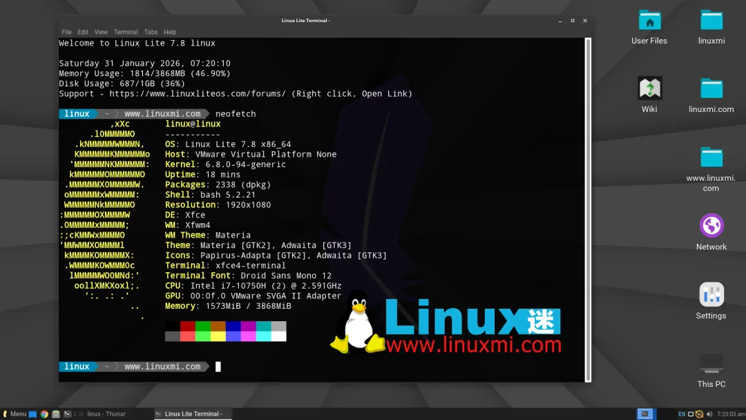 桌面环境方面,Linux Lite 7.8 继续使用 Xfce 4.18,并在此基础上进行了细致定制。系统搭配 Materia 主题、Papirus 图标以及 Roboto Regular 字体,在保持资源占用低的同时,也让整体界面看起来清爽协调,不会显得“过于朴素”。用户可以前往官方发布公告页面了解更多细节,并下载适用于 64 位系统的 Linux Lite 7.8 Live ISO 镜像进行体验或安装。