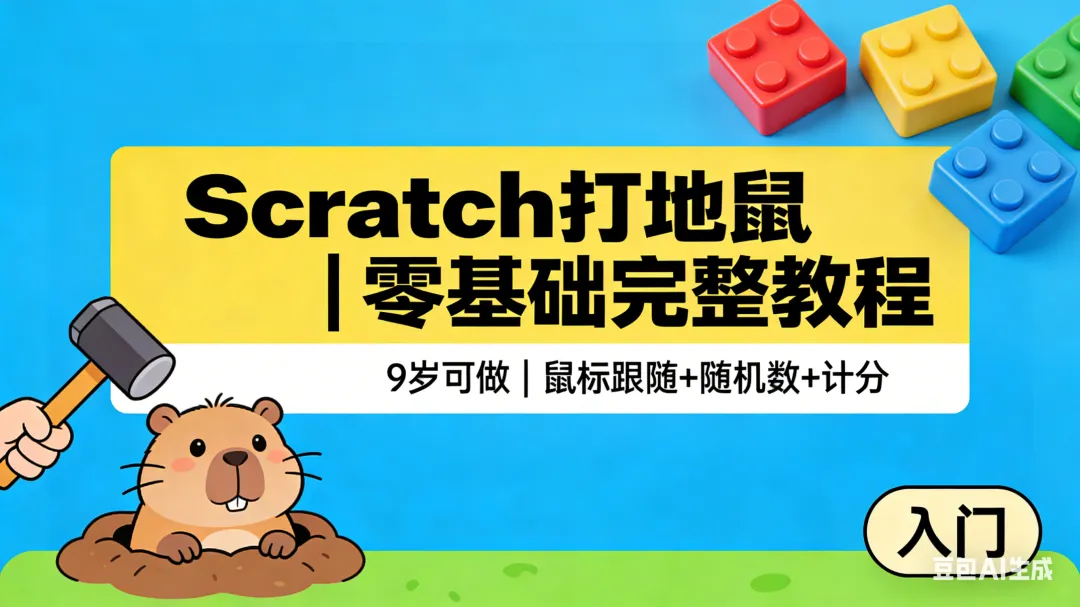 - Scratch 3 打地鼠的核心逻辑是「地鼠随机出现 + 锤子鼠标跟随 + 碰撞检测加分」,避开了 “锤子遮挡地鼠” 的坑;