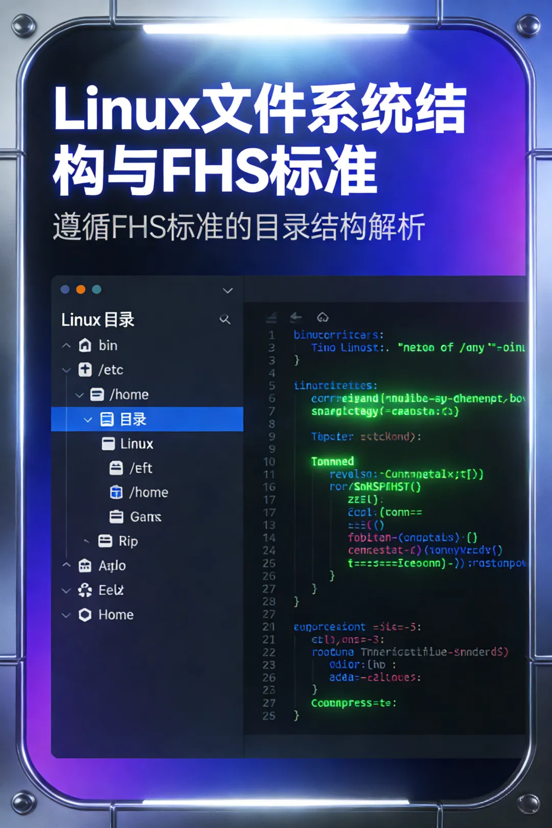 Linux 所有目录都从根目录/出发,形成一棵“目录树”,FHS 标准规定了/下必须包含的核心子目录,以及每个子目录的核心作用。先给小白看一张“目录树简化图”,建立整体认知: