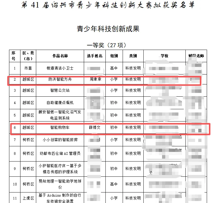 参赛全员获奖,同时获得绍兴市第一,第二成绩,并有3个作品推送到省赛,省赛获得省级一等、二等奖