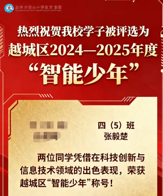 思蒂编程 7 位学员喜提越城区「智能少年」称号🏆