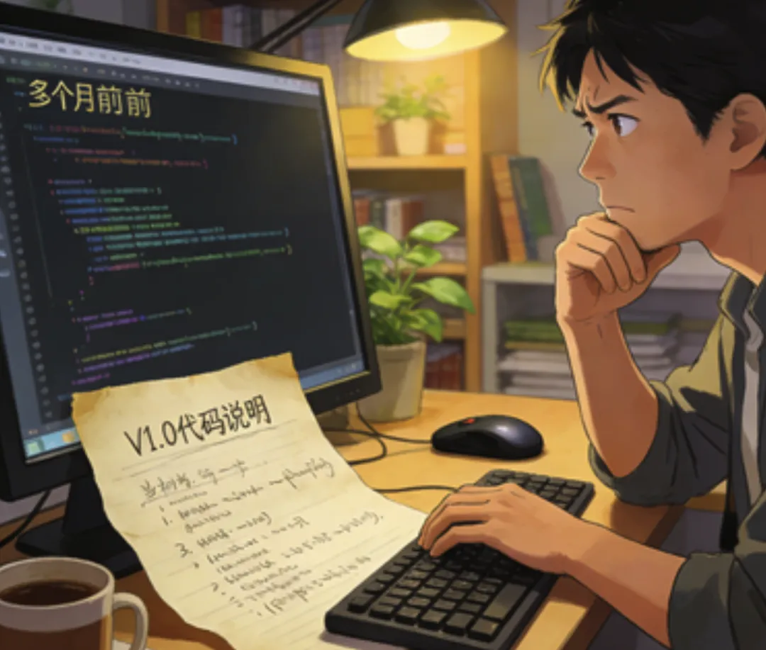 现实呢? 三个月后你自己看自己的代码,盯着屏幕足足五分钟,心里就一个想法——"这哪个傻X写的?"