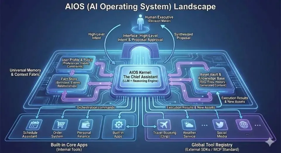 - • 记忆体系: 这是 AIOS 的“内力”。设想了事实记忆、偏好记忆、事务记录的板块,但后面还要仔细研究记忆,非常扎实的功底。