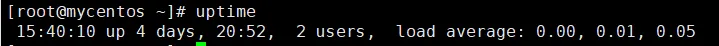 uptime 命令用户查看主机的开机时长,用户连接数量,以及在 1、5、15分钟 三个时间段内,CPU的负载情况。