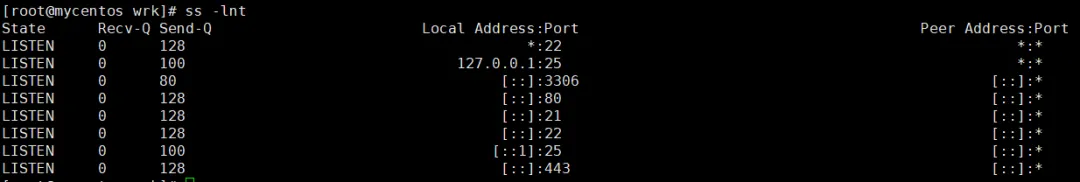 显示监听状态下的队列情况: ss -lnt