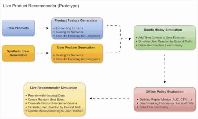 选定模型后,我们构建了一个实时推荐脚本。该脚本在一个持续循环中同时充当服务器、用户和训练器的角色。