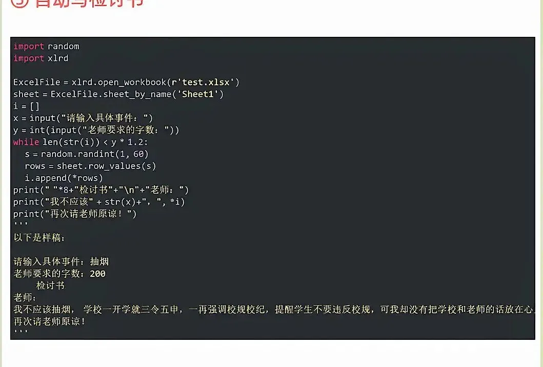 ⑤自动写检讨书