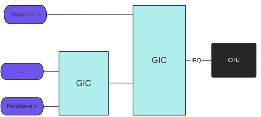 对于interrupt controller而言,它收集了多个外设的interrupt request line并向上传递,因此,interrupt controller需要对外设中断进行编码。Interrupt controller用HW interrupt ID来标识外设的中断。在interrupt controller级联的情况下,仅仅用HW interrupt ID已经不能唯一标识一个外设中断,还需要知道该HW interrupt ID所属的interrupt controller(HW interrupt ID在不同的Interrupt controller上是会重复编码的)。