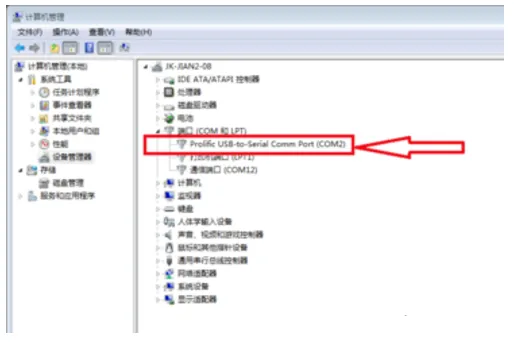 如果计算机没有COM接口,可选用FX-USB-AW电缆将计算机与PLC连接起来。在连接时,将电缆的USB头插入计算机的USB接口,电缆另一端插入PLC的编程口内。将FX-USB-AW电缆插到计算机USB接口时,还需要在计算机中安装这条电缆佩戴的驱动程序。驱动程序安装完成后,在计算机中选择“设备管理器”,弹出设备管理器窗口,如图所示,展开其中的“端口(COM和LPT)”,从中可以看到一个虚拟的COM端口,图中为COM3,记住该编号,在works2软件进行通信参数设置时要用到。