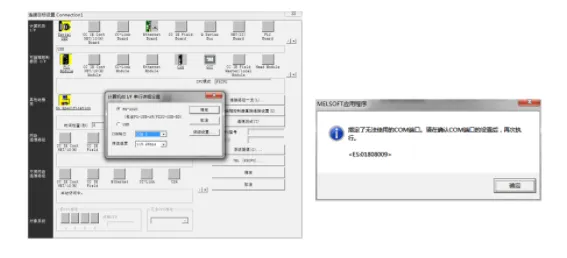 用编程电缆将PLC与计算机连接好后,在启动works2软件,打开或新建一个工程,再执行菜单栏命令“工程数据列表区→连接目标”,再选择当前连接目标,弹出连接目标设置对话框,双击左上角的“串行usb”图标,出现出现详细的设置对话框,如图所示,在该对话框中选中“RS-232C”项,COM端口一项中选择与PLC连接的端口号,使用FX-USB-AW电缆连接时,端口号应与设备管理器中虚拟的COM端口号一致,在传输速度上选择某个速度(如选19.2kbps),单击确定返回连接目标设置对话框,如果想知道PLC与计算机是否连接成功,可在连接目标设置中点击通信测试按钮,若出现图中所示对话框,表示连接失败,则要重新选择COM端口。