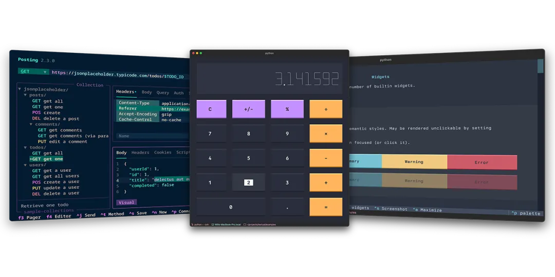 Textual的API设计简洁直观,它将现代Python的优雅特性与Web开发中先进的概念(例如解耦组件)巧妙地结合在一起。这使得开发者能够快速上手,并以高效的方式构建复杂的UI。 Textual巧妙地利用异步特性,但不会强制使用。如果你需要使用异步库,Textual可以轻松集成;如果你不需要,Textual也不会强迫你使用它,这充分体现了其灵活性和易用性。