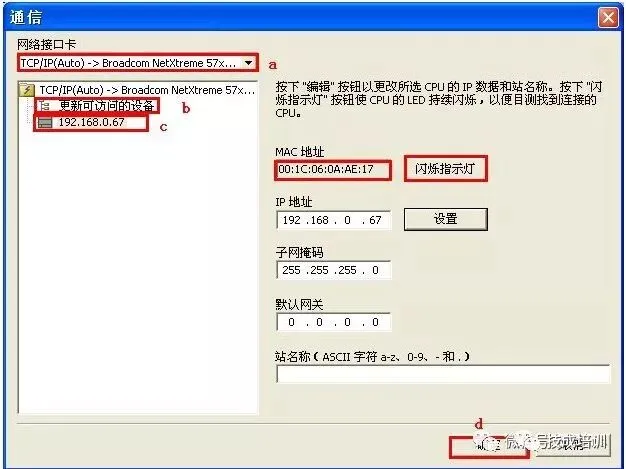 a.输入编程设备的IP 地址(必须与CPU 在同一个网段);