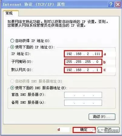 d.设置 IP地址,子网掩码和默认网关;