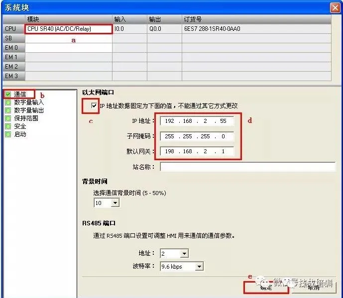 在Micro/WIN SMART 中可以通过系统块修改CPU 的 IP地址,具体步骤如下