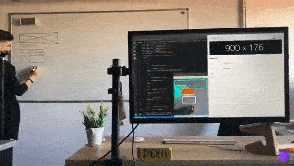 整个过程中,电脑借助摄像头拍摄到产品经理正在白板上绘制的原型草稿,一边就即时“画”出了UI,生成了代码,展示着成品网页。