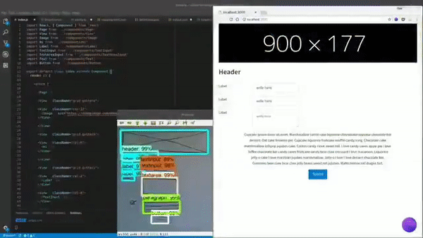 · 视觉模型检测在图像中出现的HTML部件,标记出他们的位置。