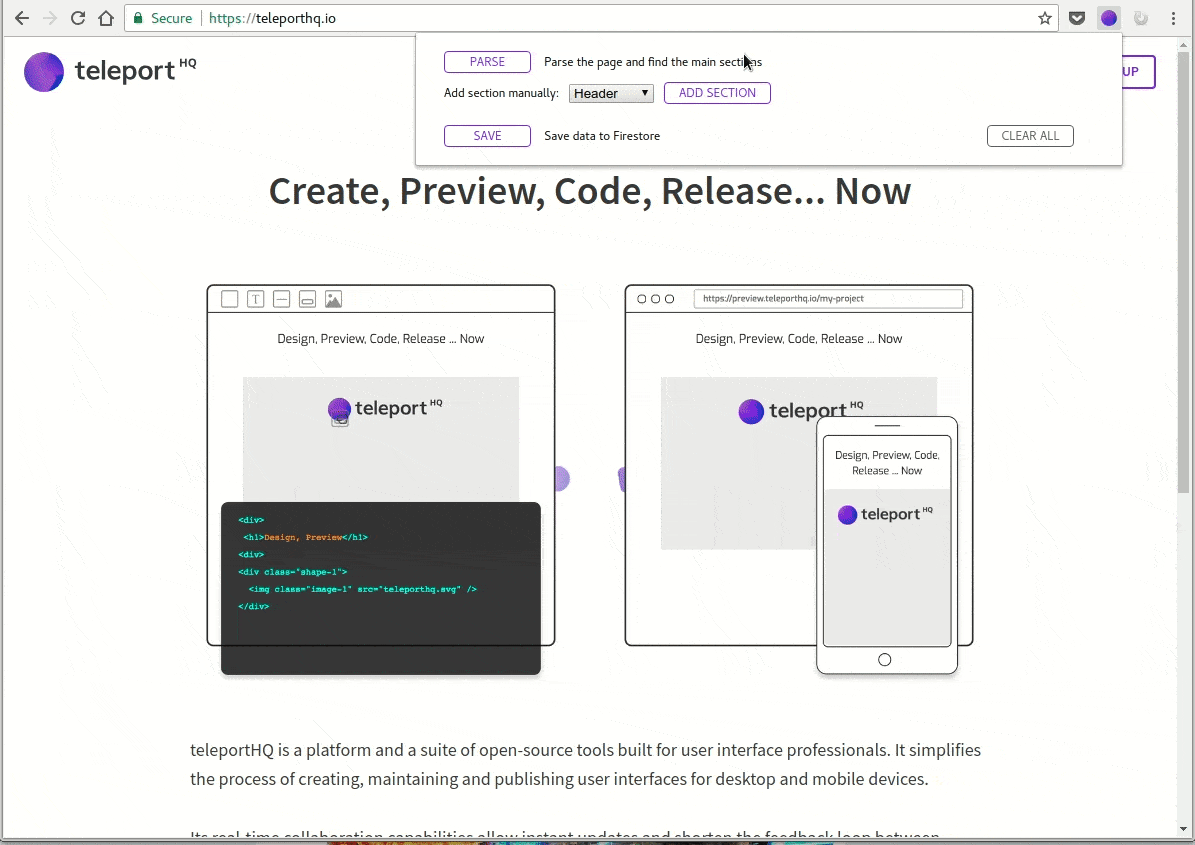 这个工具出自一个名为teleportHQ的项目,由Evo Forge和Corebuild两家欧洲公司合作创立,欧洲区域发展基金(European Fund for Regional Development)出资赞助,他们希望这个项目能让非技术人员也能方便的创建可视化的应用程序和web页面。