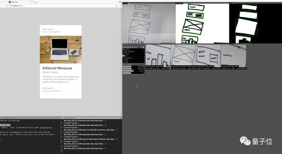 于是,他们用十几个UI部件训练了一个原型,可以将白板上的草图自动生成原型代码和设计文件。