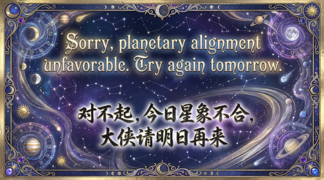 所以,各位运维兄弟们,下次老板再质问你为啥服务挂了,别再支支吾吾找理由了。直接把当天的星盘甩群里:老板,真不是我问题。主要是今天土星落在了第五宫,水星又逆行,服务器命里该有一劫。