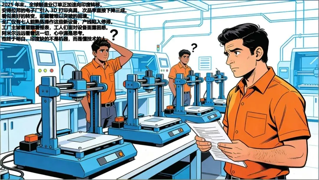 清晨的时候班加罗尔还在薄雾里醒着,这时候一间社区培训中心的灯已经亮了三个小时,二十多名青年围在3D打印机前,专注地调整参数、观察成型过程——他们不是工程师,而是刚从农业小镇走来的职校生。在2025年末到2026年初,这种状况在印度各处偷偷地传播开来,一场由物联网和3D打印推动的技术浪潮,正把那个之前称作人力宝库的国家,变成一个精心打造的革新熔炉。印度最新发布的《经济调查》,很少见地用一整个章节的篇幅来呼吁,不要光说缺人了,真正缺少的是契合未来制造的技能这份报告把物联网和3D打印当作国家优先发展的核心能力,一下子就引发了职场上的热烈讨论,背后推力清晰可见——全球制造业订单加速向印度转移,但工厂主们很快发现,设备可以进口,人才却无法速成。安得拉邦一家为国际品牌代工的电子厂引入3D打印夹具后,次品率下降三成,却因全厂仅七人能操作设备,产线一度陷入“有机器无效率”的困局。技术落地的瓶颈,不在资本,而在人
