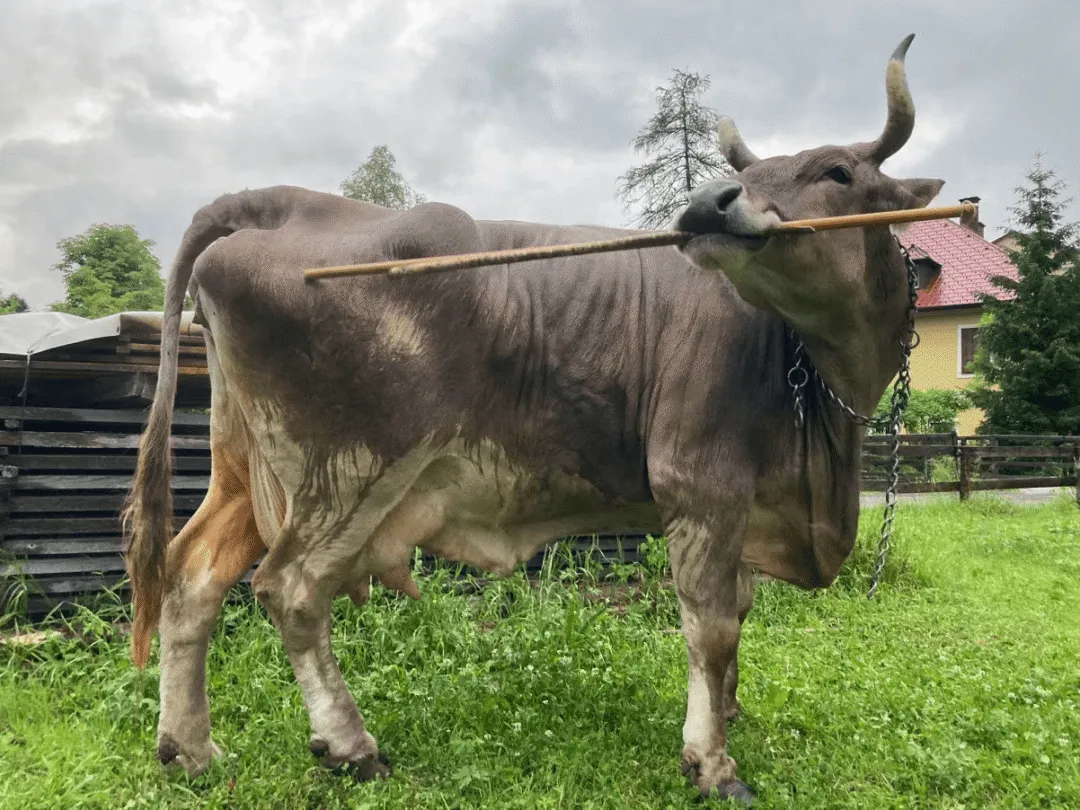 奥地利小镇Nötsch im Gailtal的瑞士褐牛Veronika被观察到使用树枝和刷子挠痒,这是首个被科学记录的宠物牛使用工具案例。