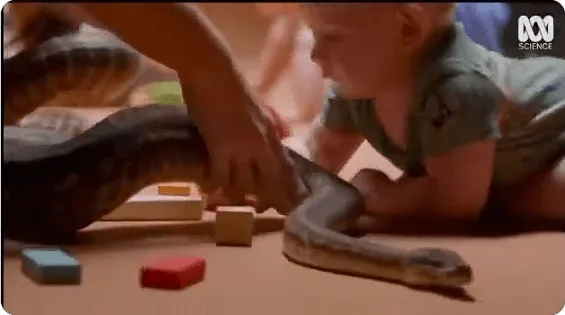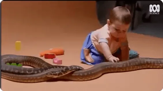 国外一科学电视节目把蟒蛇跟婴儿放在一起,试图证明人类婴儿并非天生惧怕蛇。但是我想,在孩童时期,大脑、神经系统都还没发育完全,应该只会怕没奶喝吧...