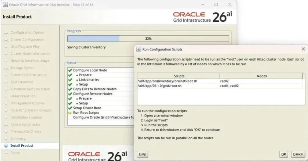 [root@26ai02 grid]# /u01/app/26.1.0/grid/root.sh