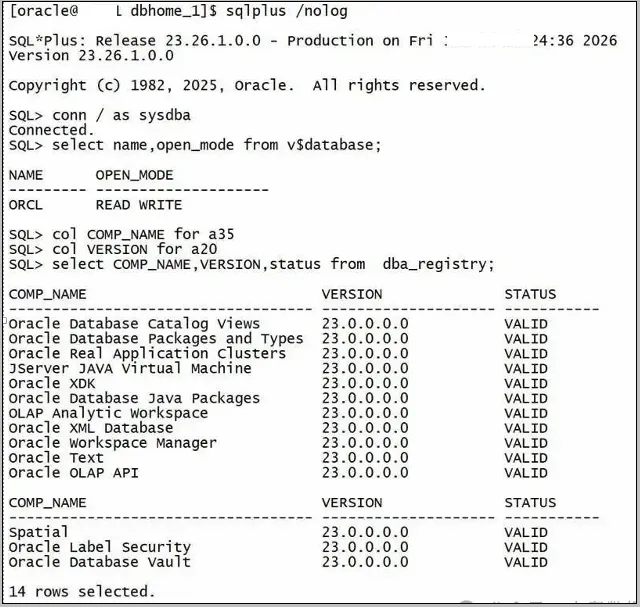数据库:Oracle 26ai 23.26.1