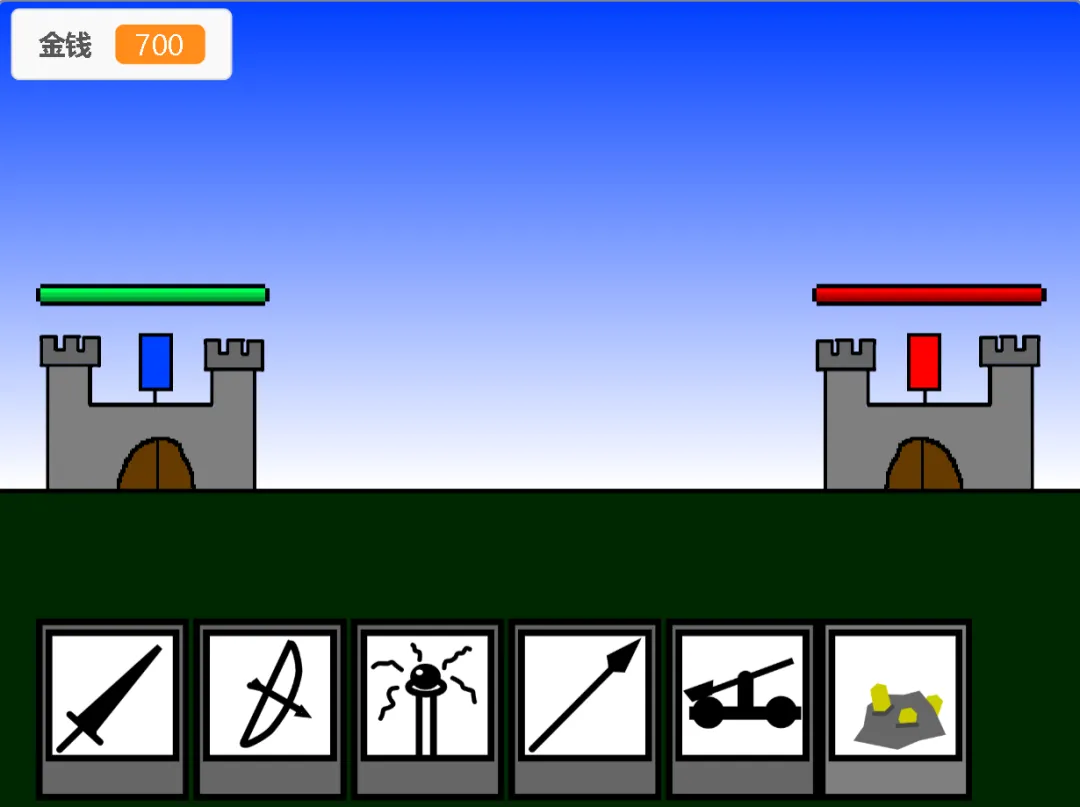 真正的课程导入语:同学们!有没有想过自己能成为一位伟大的将军,指挥千军万马与敌人作战?今天的Scratch课堂,我们就要解锁超酷的"中世纪战争"游戏开发!想象一下:你亲手指挥不同类型的士兵,有拿着剑的剑士、射箭的弓箭手、会魔法的法师,还有威力强大的投石车!你需要合理分配金币,建造金矿,训练士兵,保卫自己的基地,同时摧毁敌人的基地。通过这节课,我们会学会角色移动、碰撞检测、克隆、变量控制这些核心编程技巧,更能锻炼战略思维和创造力。接下来,就让我们一起化身小小指挥官,用积木搭建属于自己的中世纪战场,看看谁能成为真正的战争之王!准备好开启这场编程冒险了吗?现在,Let's code!