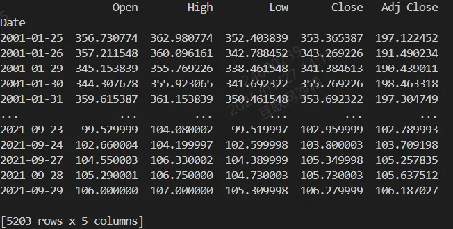 df = pd.read_csv('/workspaces/Data-Miscellany-Forum/src/多变量时序预测系列-股票预测/多输入+单输出+单步/data.csv', parse_dates=["Date"], index_col=[0])df = pd.DataFrame(df)var_num = len(df.columns)print(df)