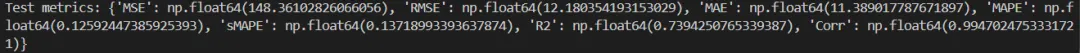 def evaluate_metrics(y_true, y_pred):y_true = y_true.reshape(-1)y_pred = y_pred.reshape(-1)eps = 1e-8mse = np.mean((y_true - y_pred)**2)rmse = np.sqrt(mse + eps)mae = np.mean(np.abs(y_true - y_pred))mape = np.mean(np.abs((y_true - y_pred)/(np.abs(y_true)+eps)))smape = np.mean(2*np.abs(y_true - y_pred)/(np.abs(y_true)+np.abs(y_pred)+eps))# R2ss_res = np.sum((y_true - y_pred)**2)ss_tot = np.sum((y_true - np.mean(y_true))**2) + epsr2 = 1 - ss_res/ss_tot# Pearsoncorr = np.corrcoef(y_true, y_pred)[0,1]return dict(MSE=mse, RMSE=rmse, MAE=mae, MAPE=mape, sMAPE=smape, R2=r2, Corr=corr)