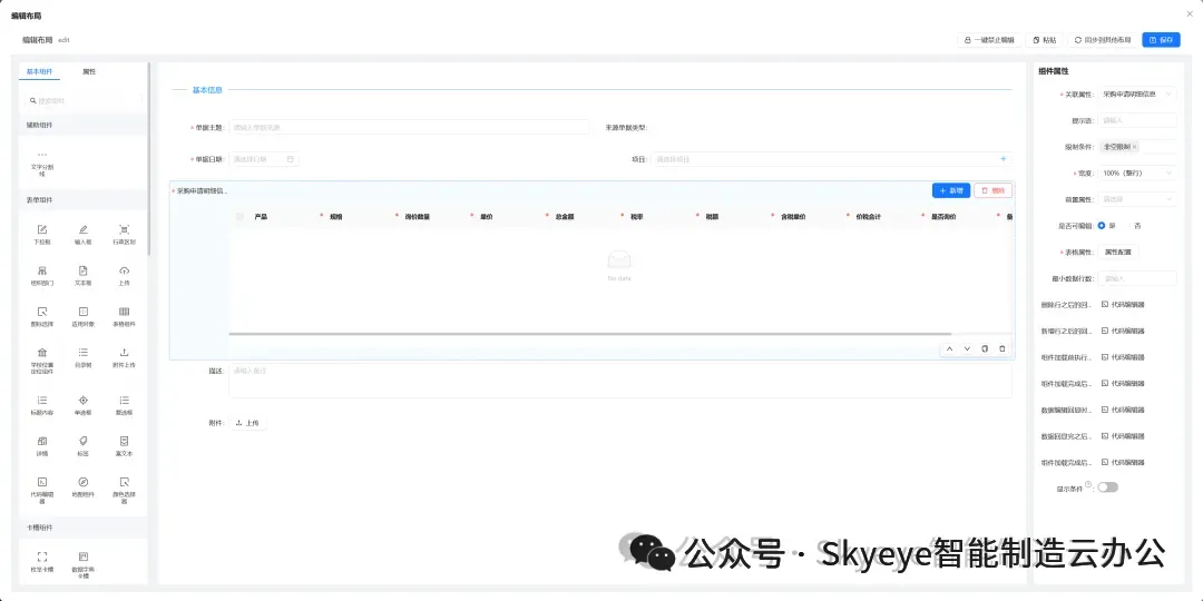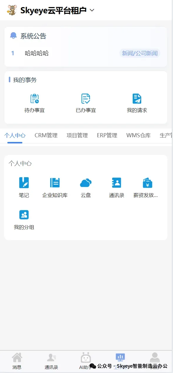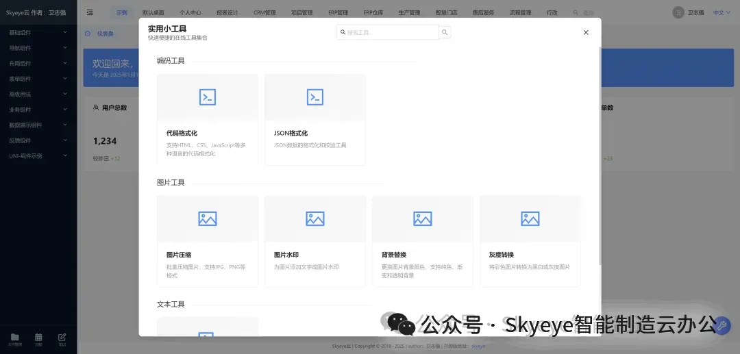 Skyeye 云智能制造,智能制造一体化,采用 SpringBoot+ UNI-APP + Ant Design Vue 的零代码平台开发模式。包含 50 多种电子流程,CRM、PM、ERP、MES、ADM、OA、EHR、AI、项目、商城、财务、多班次考勤、薪资、招聘、云售后、论坛、问卷、报表设计、工作流、Saas 等功能。打造全网首套零代码、功能最全的智能制造行业供应链一体化管理软件。