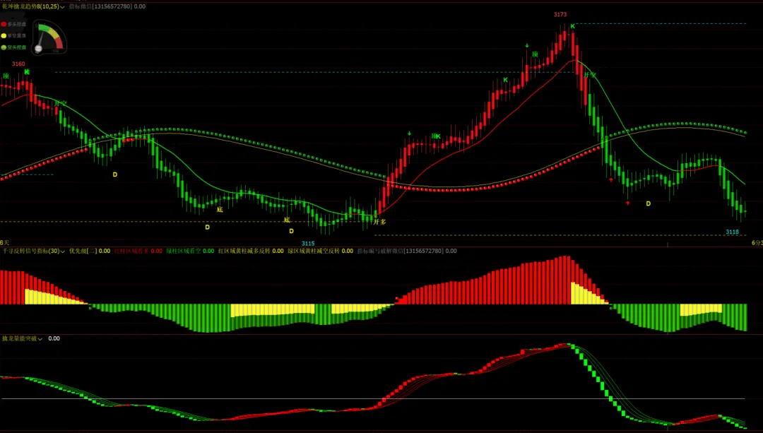 DRAWTEXT((比>1.1 AND 止跌见底<5),(GETPRICE('HIGH')+GETPRICE('LOW'))/2,'●'),COLORWHITE;