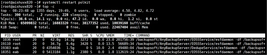 1355天(3年8个月)未重启的 CentOS 7 服务器,负载飙到 9.54,内存使用率 83%,而罪魁祸首是一个看似人畜无害的系统进程——polkitd。