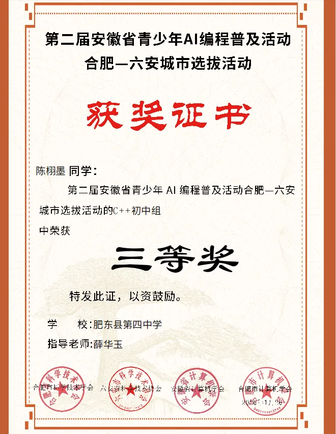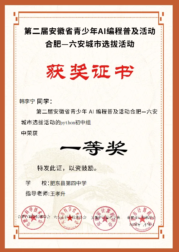 喜报!肥东四中在安徽省青少年AI编程普及活动中斩获佳绩