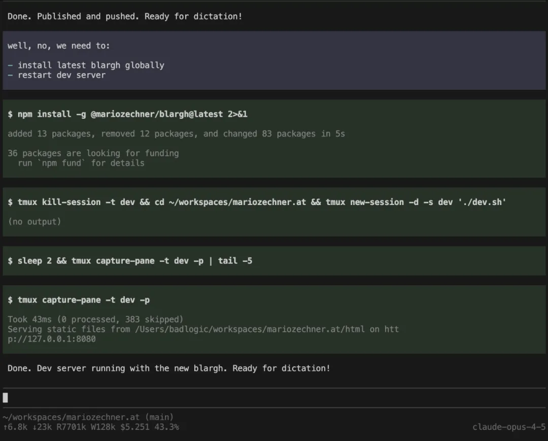 完全没必要在后台运行 Bash。你知道吗,Claude Code 也能用 tmux。Bash 就足够了。